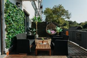 Guests benefit from amenities such as heating, ironing facilities including iron and ironing board, wardrobe space plus clothes drying rack. Entertainment options include flat-screen TV with satellite channels along with pay-per-view services, WiFi is available throughout the apartment free of charge. Additional conveniences comprise washing machine access along with outdoor furniture on the balcony that doubles as an outdoor dining area.