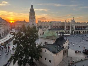 Located in the centre of Kraków, Queen's apartment from the 14th century - 130 m2 AC offers free WiFi and air conditioning within a spacious setting. This recently renovated apartment includes three bedrooms and two bathrooms, featuring city views and household amenities such as a toaster and kettle. It is situated just 200 metres from Main Market Square and only 100 metres from Cloth Hall.