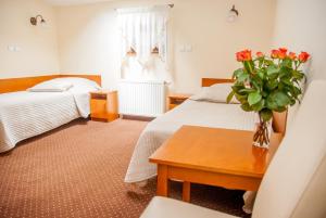 The property boasts an on-site restaurant specializing in Polish cuisine where breakfast is served daily. Guests benefit from free WiFi throughout all areas of the guest house along with private gated parking available for an additional fee. The front desk operates around the clock providing secure storage for valuables as well as daily housekeeping services.