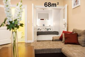 В апартаментах две спальни, а также гостиная с тремя спальными местами. Гости могут пользоваться полностью оборудованной мини-кухней с плитой, холодильником, посудомоечной машиной, микроволновкой, электрическим чайником, принадлежностями для приготовления чая и кофе, обеденным столом и кухонной утварью для удобства приготовления пищи.